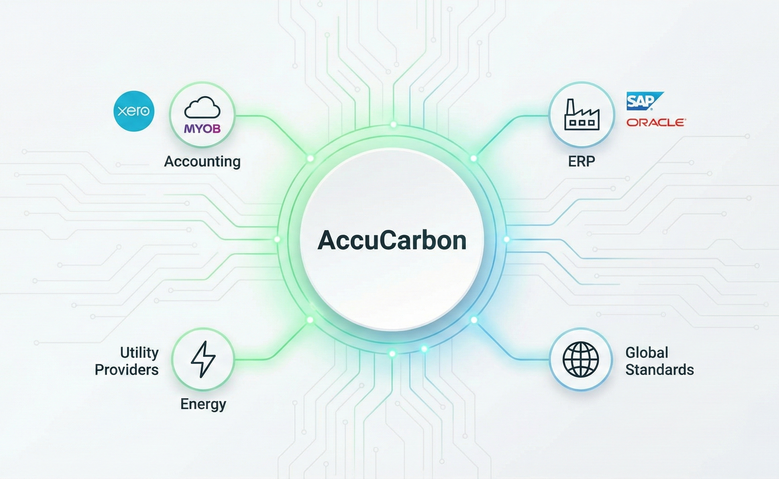 Stop manual data entry. AccuCarbon connects directly to your Xero, MYOB, or SAP ledger to automate carbon calculations.